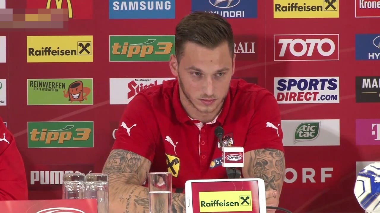 Marco Arnautovic spricht bei einer Pressekonferenz über seine Verletzung.