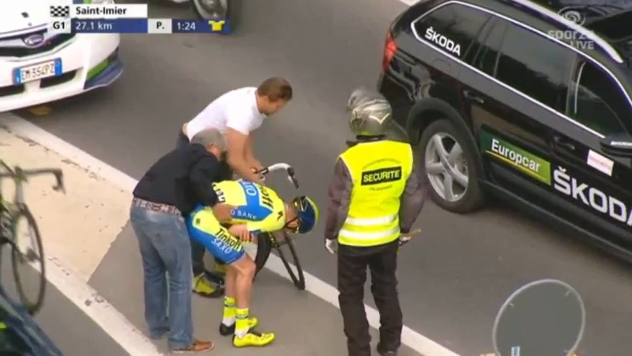 Das muss weh tun: Dieser Rad-Profi knallt in eine geöffnete Autotür.