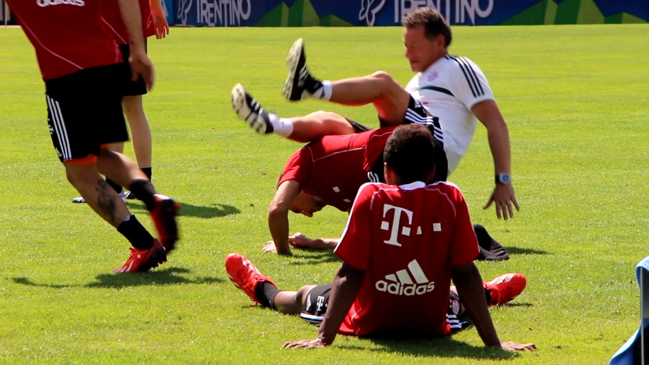 Franck Ribéry erweist sich wieder einmal als Stimmungsmacher im Team des FC Bayern München. Im Trainingslager in Italien sorgt der Franzose ein weiteres Mal für Lacher. "Opfer" seiner Spaßaktion ist der Physiotherapeut Gianni Bianchi. Ribéry kriecht unbemerkt hinter ihn und fordert seinen Mitspieler Diego Contento auf, Bianchi zu schubsen. Der Physiotherapeut fliegt rücklings über den Franzosen und landet auf dem Rasen, nahms aber mit Humor.