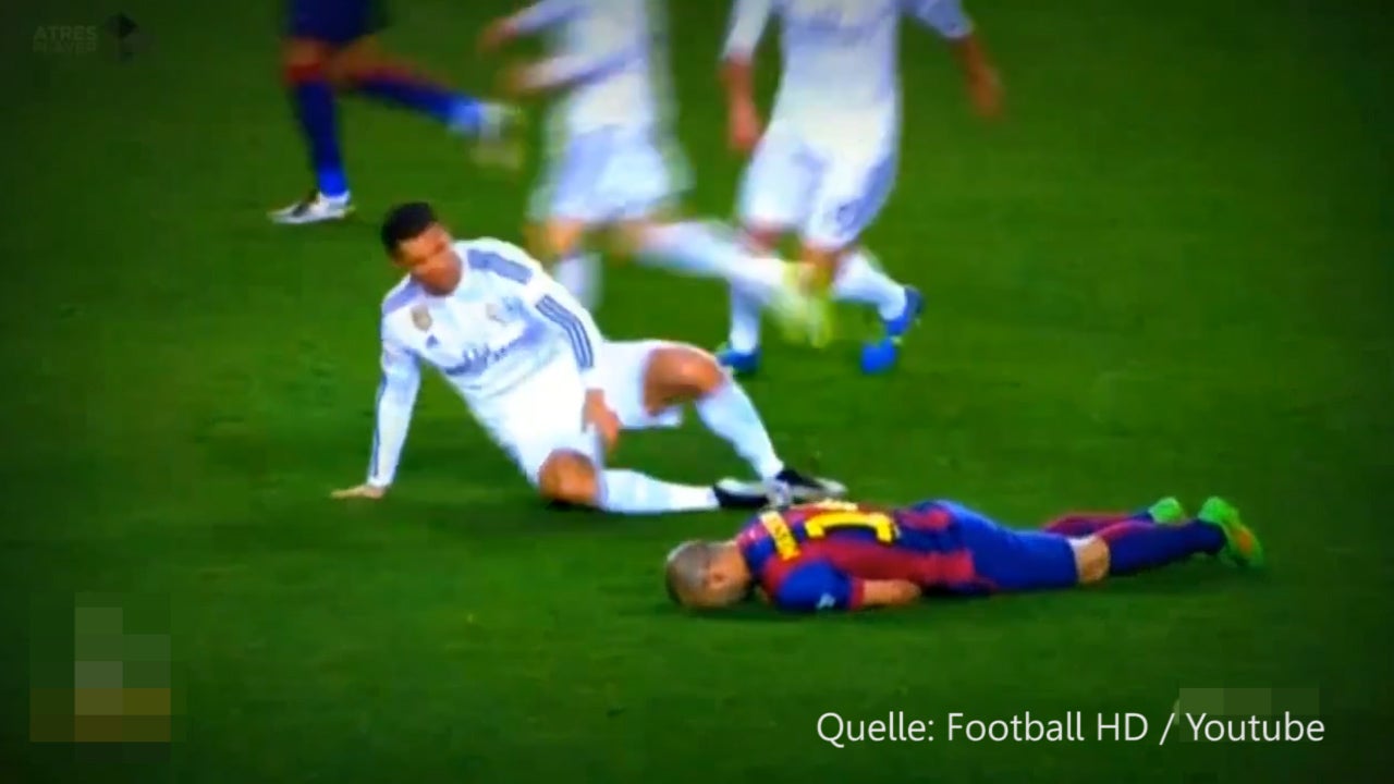Cristiano Ronaldo zieht seinen Gegenspieler Javier Mascherano am Ohr.