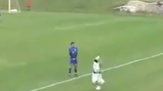 Ein spektakulärerSalto-Outeinwurf trifft einen Spieler mitten ins Gesicht.