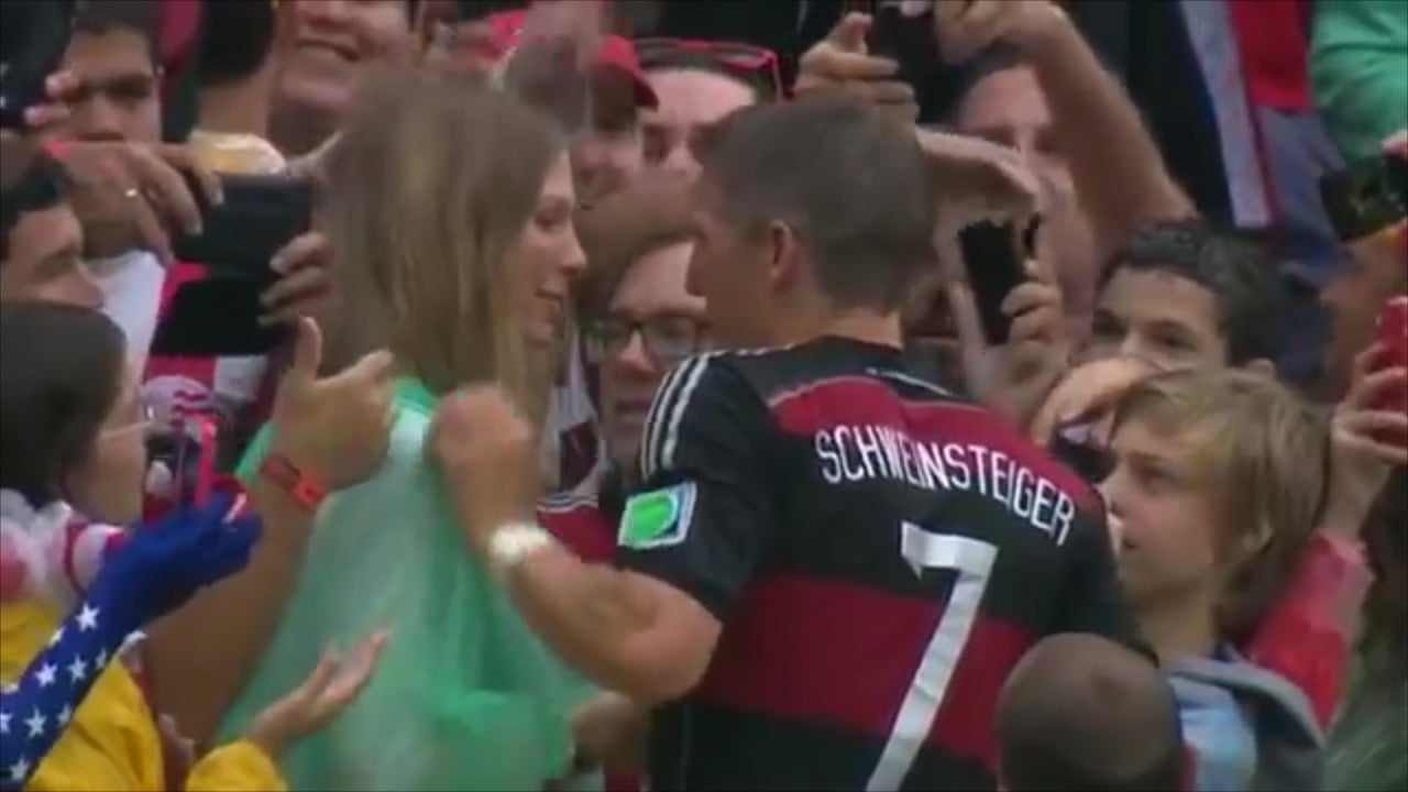Bastian Schweinsteiger mit langjähriger Freundin Sarah Brandner nach einem Match bei der Bayern-USA-Tour.