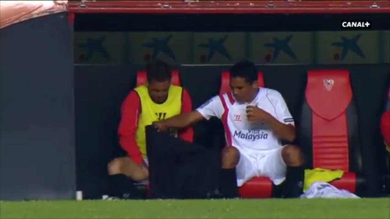 Sevilla-Star Fernando Navarro erleichtert sich auf der Ersatzbank.
