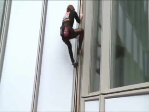 Der auch als "Spiderman" bekannte Fassadenkletterer Alain Robert hat ohne Sicherungsseil den höchsten Wolkenkratzer Frankreichs erklommen.