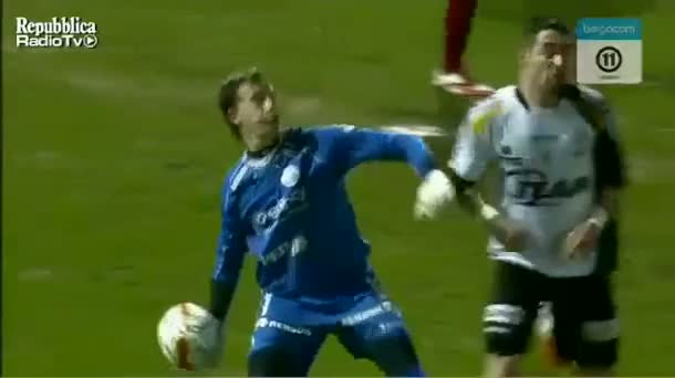 So einen Patzer hat man im Fussball wohl selten gesehen. Der belgische Torwart Sammy Bossut wollte den Ball eigentlich ganz weit ins Feld schiessen. Leider vergass der Keeper den Ball auch loszulassen. Sehen Sie, was dann passiert.