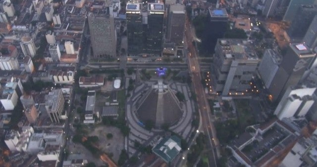 Die Basejumper Jokke Sommer und Ludovic Woerth zeigen ihren spektakulären Flug - mitten durch zwei Wolkenkratzer. (Quelle: Youtube/MrShara69)