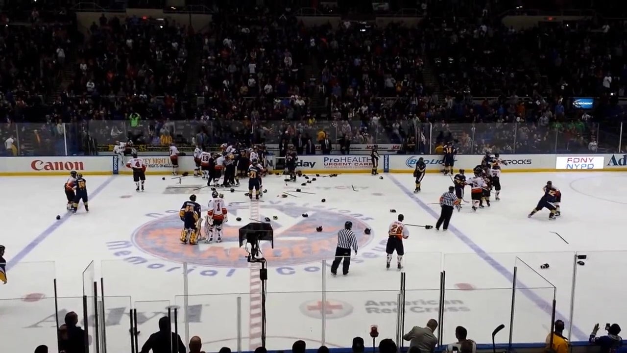 Beim jährlich stattfindenden Match der New Yorker Polizei gegen die New Yorker Feuerwehr kam es – wie in diesem Amateurvideo zu sehen ist – zu handfesten Auseinandersetzungen zwischen einigen Spielern.