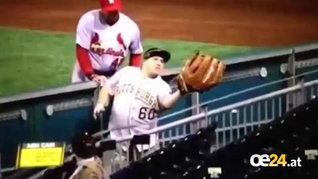 Ein unglaublicher Fang gelang diesem Pittsburgh-Fan beim Spiel seiner Baseball-Mannschaft. Mit seinem überdimensionalen Handschuh fängt er das Leder ohne Probleme.