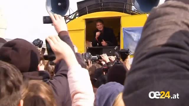 "Baywatch"-Star David Hasselhoff hat gemeinsam mit Tausenden Demonstranten in Berlin für den Erhalt der letzten Überreste der Berliner Mauer demonstriert, der weltbekannten East Side Gallery.