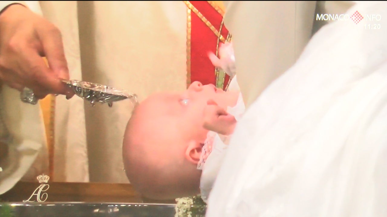 Erzbischof Barsi fängt mit der Taufe von Thronfolger Jacques an. Der kleine Prinz bleibt ganz ruhig.