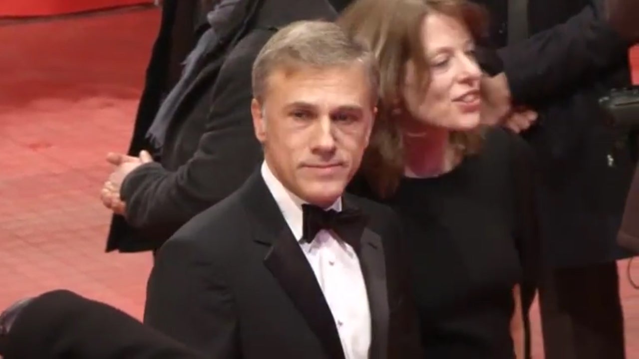 Schaulaufen der Stars (zB Christoph Waltz) auf dem roten Teppich des Berlinale-Palastes.