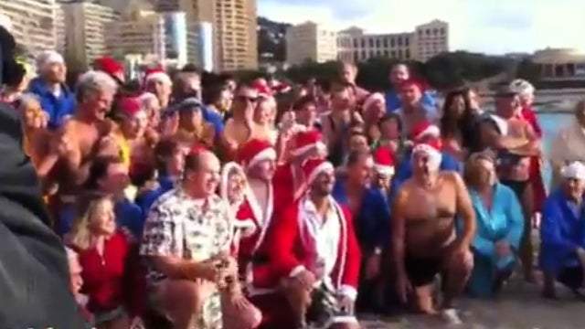 Jetzt wissen wir, was Albert gemacht hat, während seine Ehefrau Charlène solo in Berlin bei Ein Herz für Kinder glänzte: Er sprang in bunter Badehose ins kalte Nass.