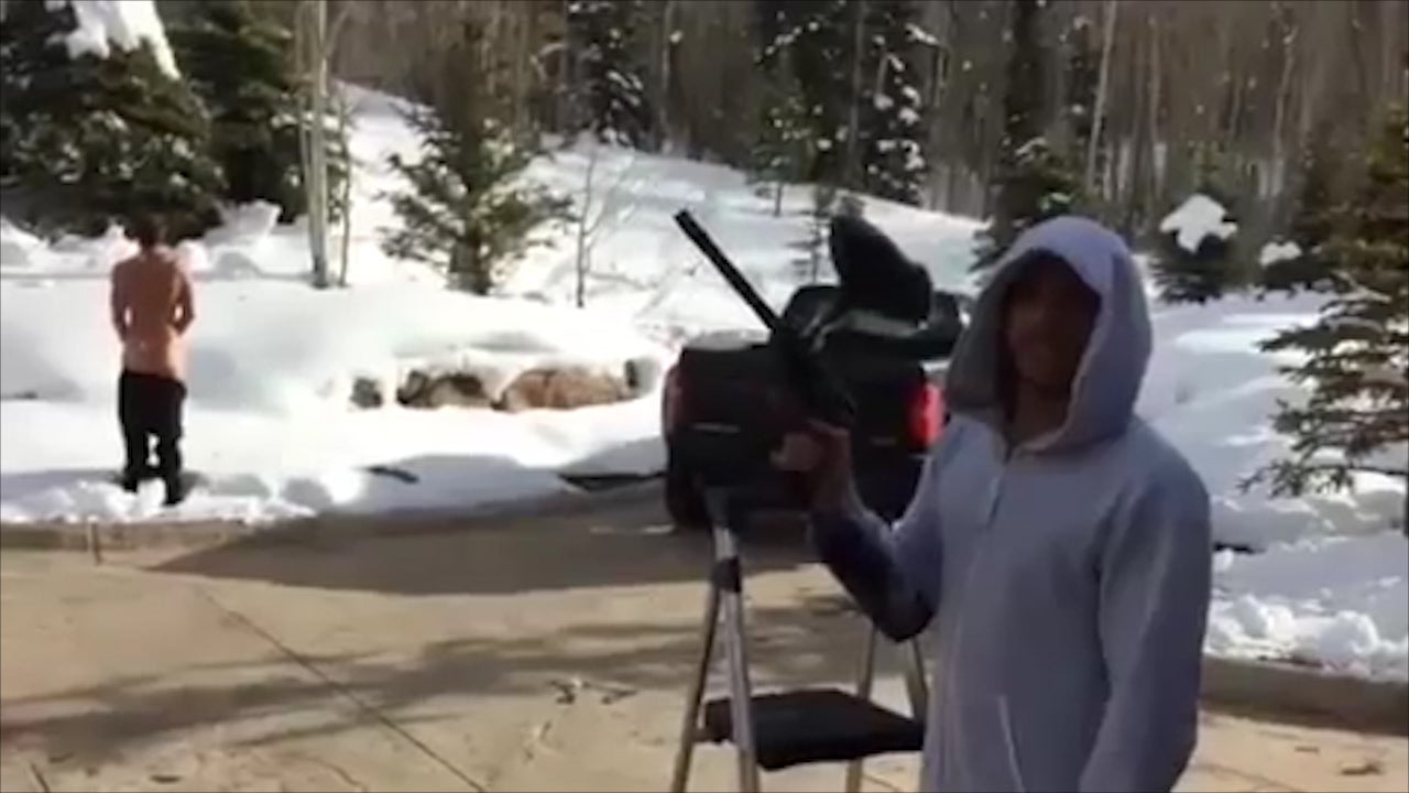 Weltmeister Lewis Hamilton schießt mit Paintball-Gun auf seinen Fitness-Coach.