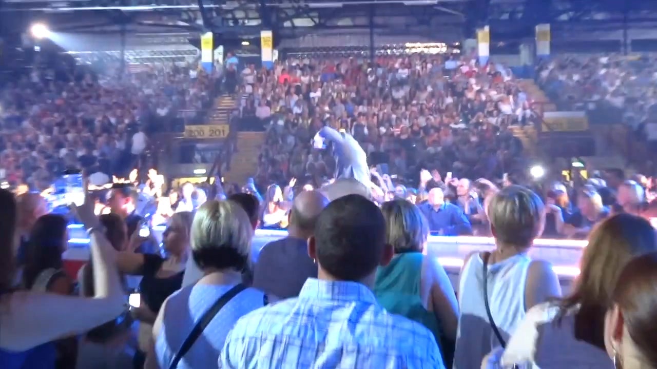 Bei Konzert in Newcastle stürzte er von der Bühne und verletzte eine Frau.
