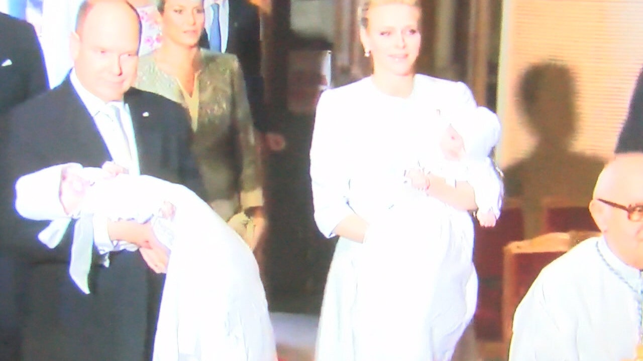 Die Zwillinge werden von Prinz Jacques und Prinzessin Gabriela in die Kirche gebracht.