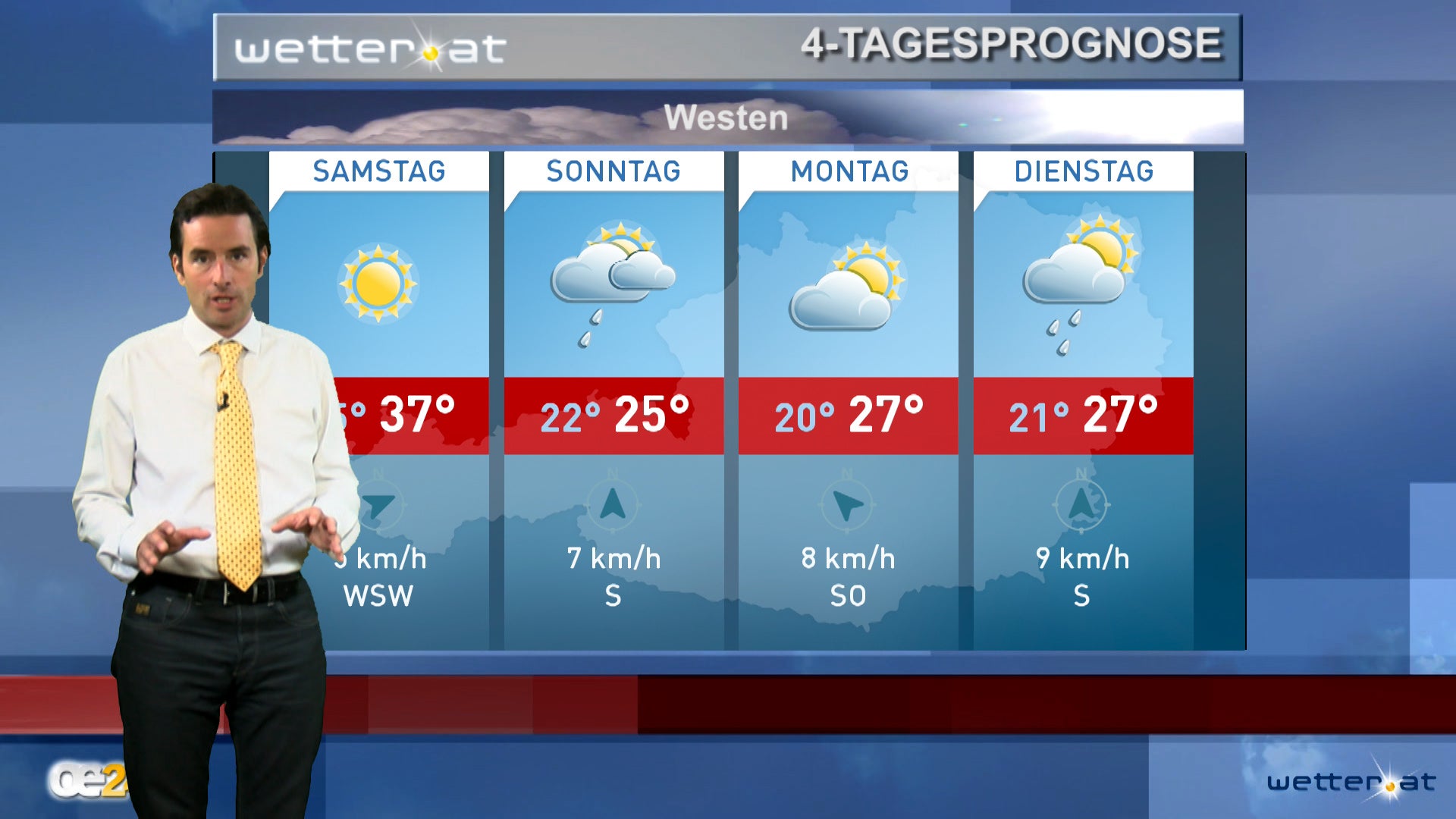 Hoch Antonia liegt über Ostfrankreich. Zwischen diesem neuen Hoch und Tief Bernd über dem Nordatlantik und Nordeuropa weht anfangs noch feuchte Meeresluft zu uns. Wolken mit örtlichen Schauern legen sich daher über das nördliche Mitteleuropa. Ein neuer Schwung Saharaluft dringt über die Iberische Halbinsel nordostwärts vor. Wechselhaft ist es in Skandinavien.
