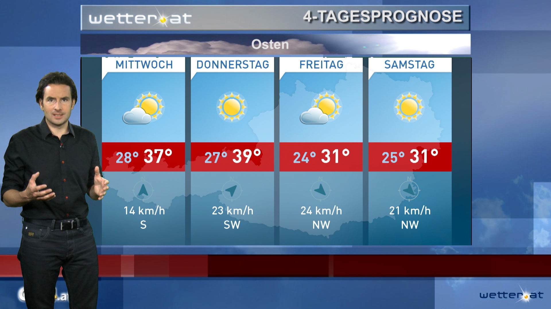 In weiten Teilen des Landes überwiegt der Sonnenschein. Lokale Quellwolken bilden sich bevorzugt über dem Berg- und Hügelland, fallen dabei aber nicht ins Gewicht. Es weht nur schwacher Wind aus Ost bis Süd.