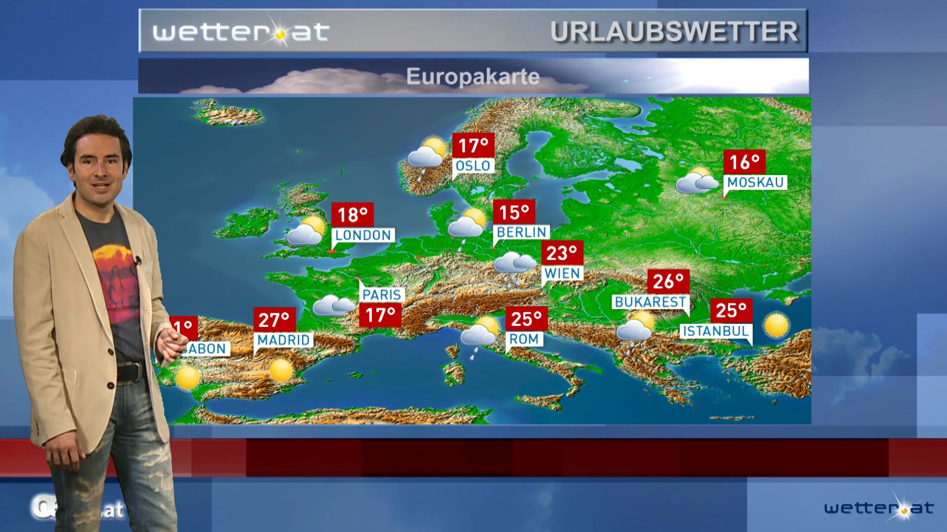 oe24.at oe24 Video WETTER WETTER Das Urlaubswetter 11.09.13, 00:04 Das Urlaubswetter Fehler im Artikel gefunden? Jetzt melden.
