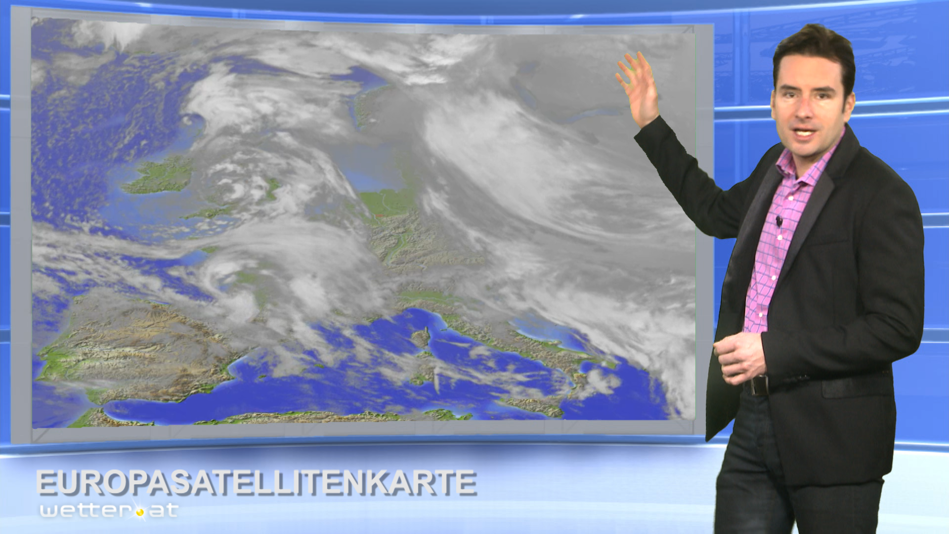Im Süden fällt Schnee, der im Tagesverlauf in Richtung Osten zieht. Trocken und sonnig bleibt es am föhnigen Alpennordrand.