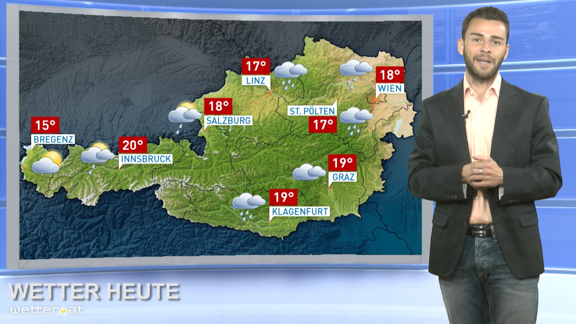 Mit einer Störungszone ziehen von West nach Ost Wolken und Regenschauer durch, lokal können auch Gewitter eingelagert sein. Am Nachmittag nimmt die Schauerneigung überall wieder ab und von Westen her setzt sich vermehrt die Sonne durch. Der Wind weht mäßig, im Donauraum und im Osten vorübergehend auch lebhaft aus West bis Nordwest.