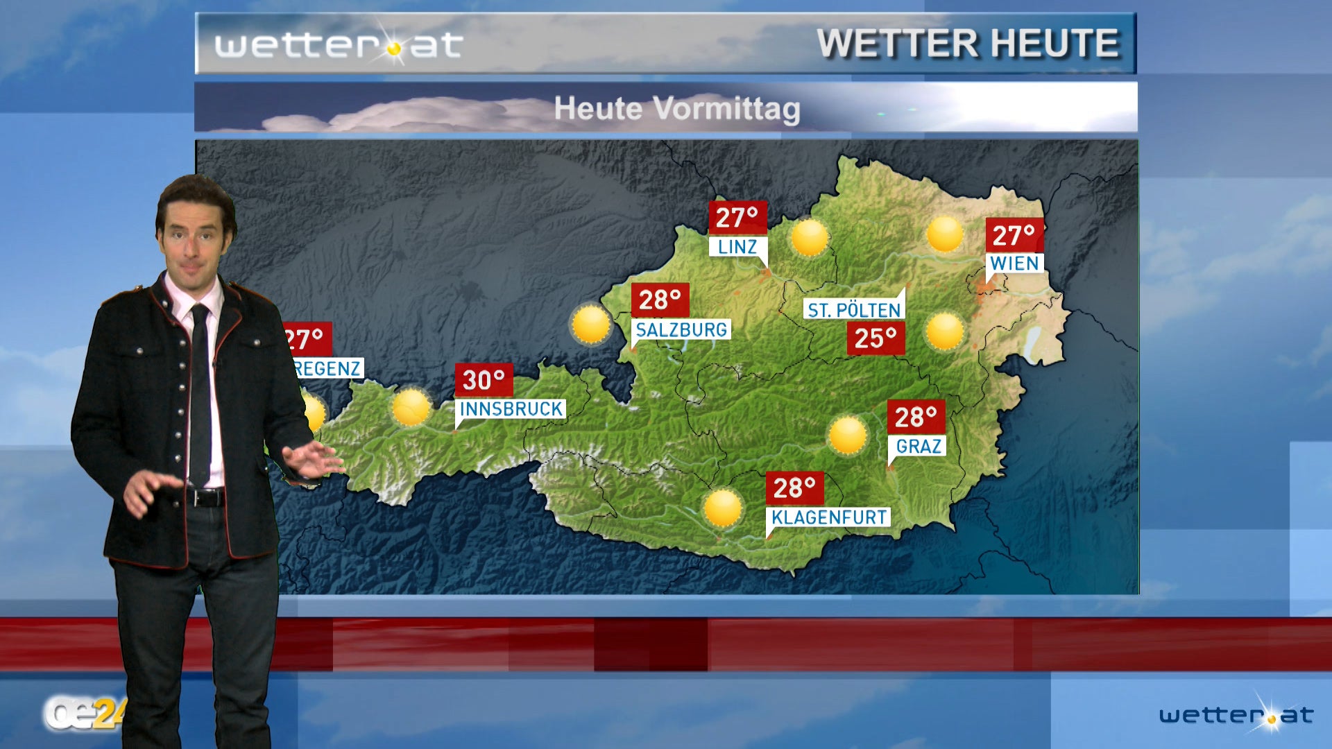 In weiten Teilen des Landes überwiegt strahlender Sonnenschein und oft zeigt sich der Himmel sogar wolkenlos. Selbst im Bergland entwickeln sich nur einzelne, harmlose Quellwolken.