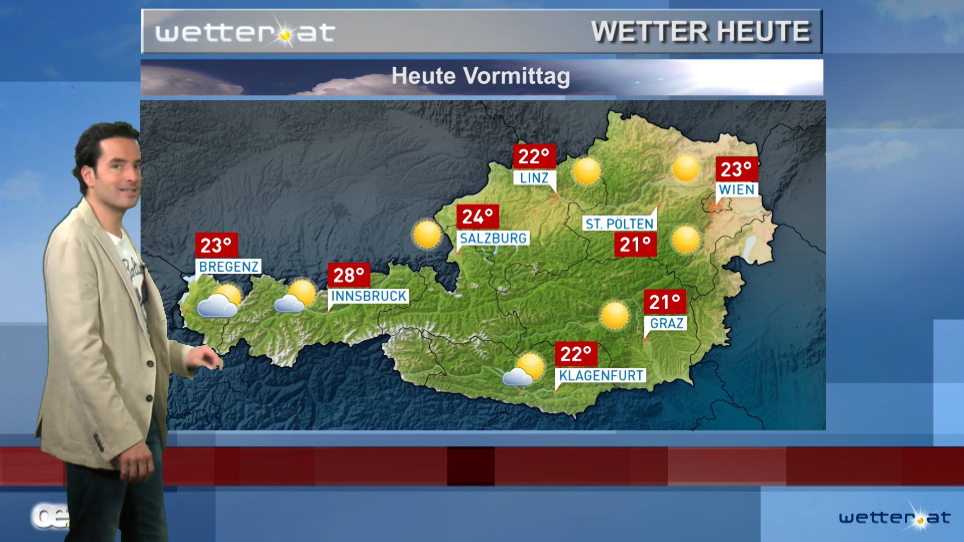 In weiten Teilen des Landes überwiegt strahlender Sonnenschein und besonders im Flachland bleibt es auch den ganzen Tag wolkenlos. Selbst in den Bergen entwickeln sich oft nur harmlose Quellwolken, lediglich im Westen sind vereinzelt kurze Regenschauer möglich.