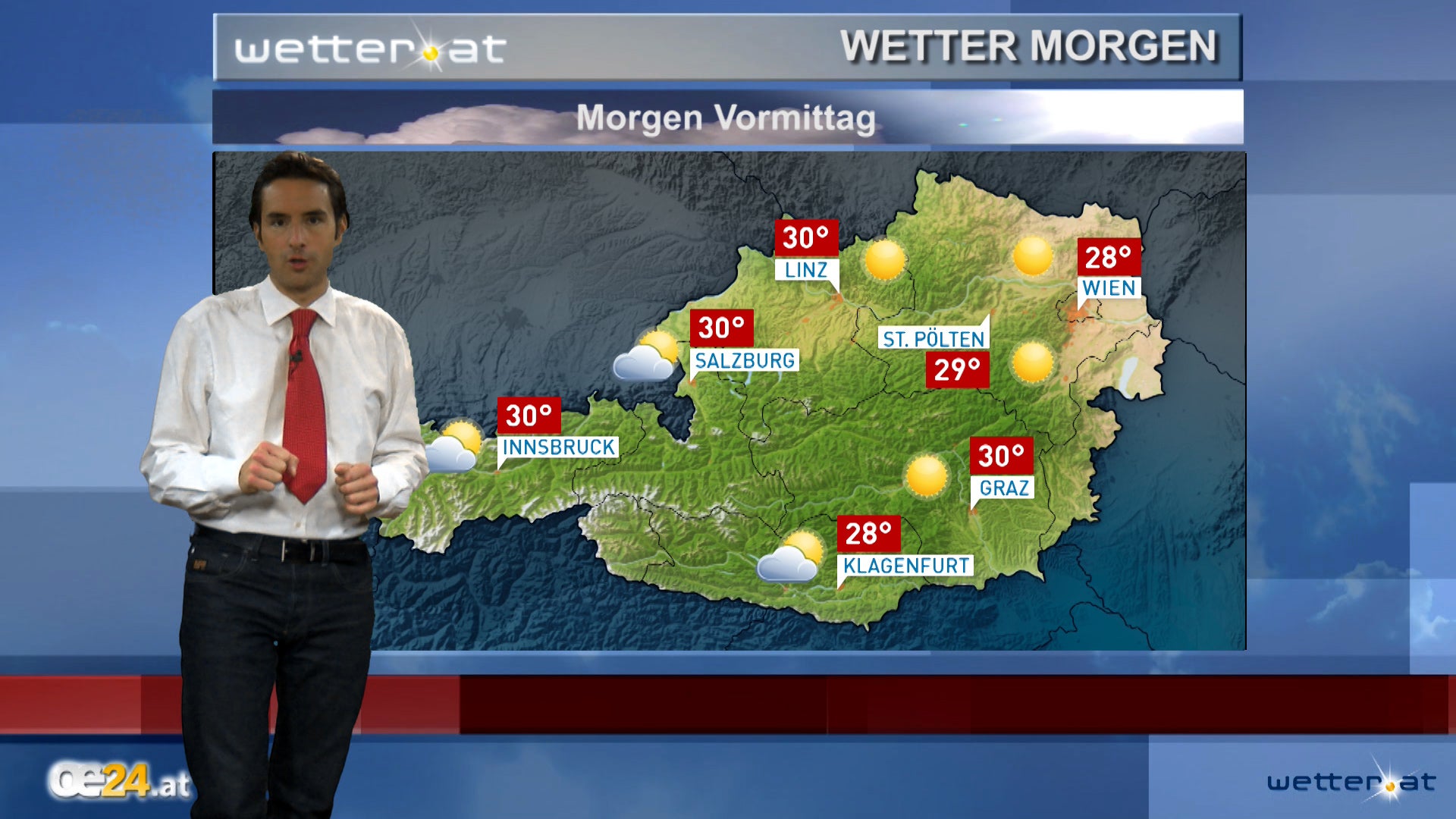 oe24.at oe24 Video WETTER WETTER Das Wetter morgen 23.07.13, 10:36 | Aktualisiert: 23.07.13, 15:03 Der Tag startet verbreitet sonnig. Fehler im Artikel gefunden? Jetzt melden.