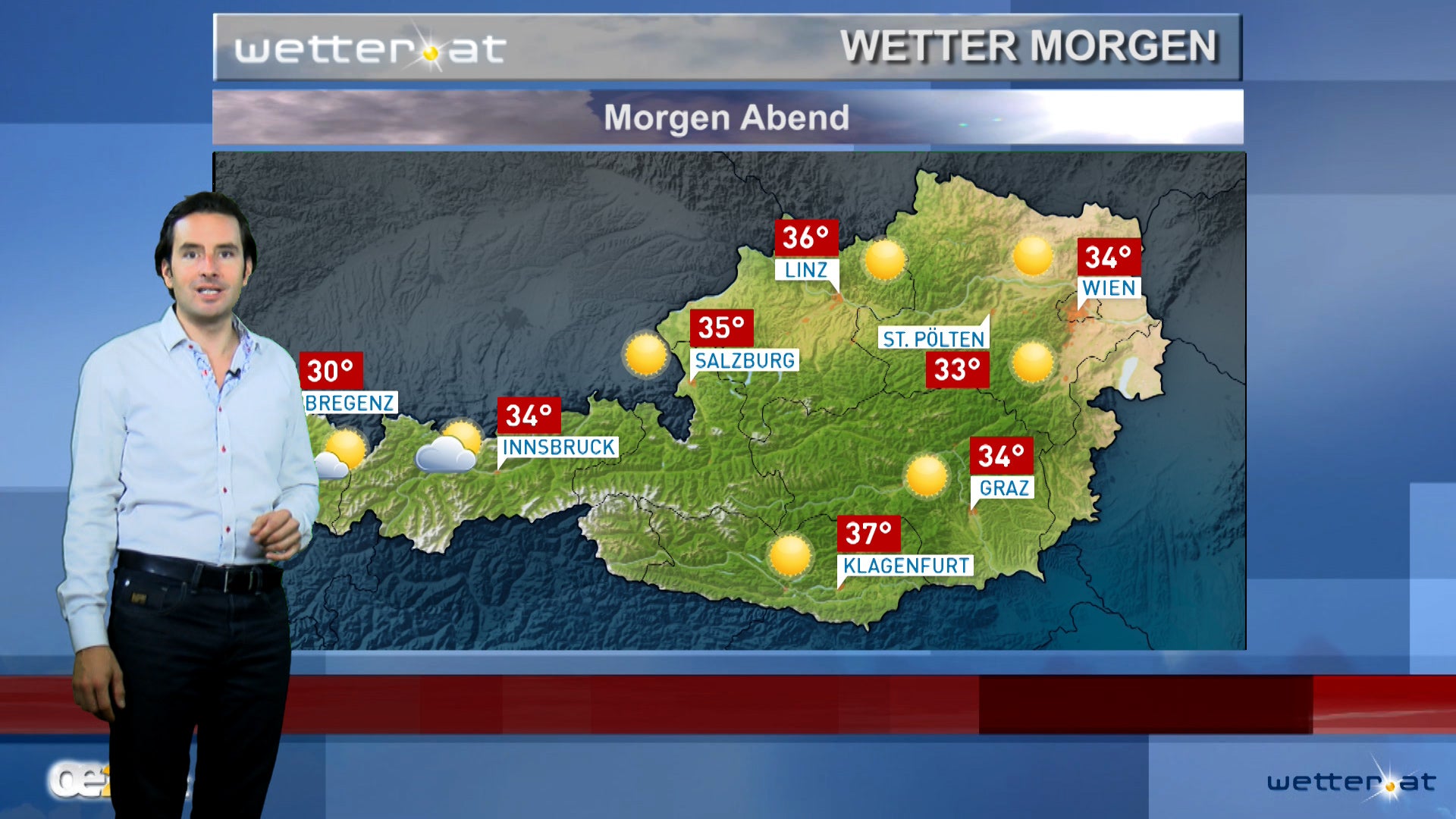 Der Hochdruckeinfluss nimmt im Alpenraum mit sehr sonnigem und beständigem Wetter weiter zu. Zumeist ist der Himmel nahezu frei von Wolken, lediglich über dem Bergland und ganz im Osten bilden sich ein paar flache Quellungen.