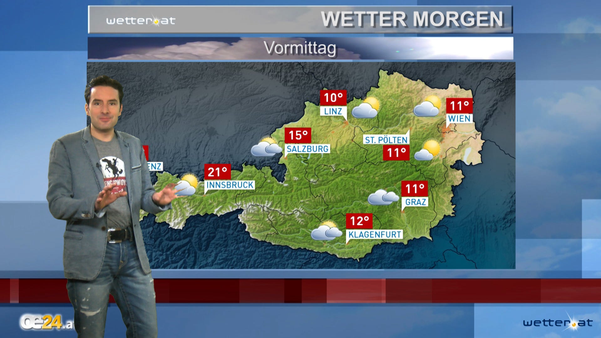 oe24.at oe24 Video WETTER WETTER Das Wetter morgen 18.10.13, 00:04 | Aktualisiert: 18.10.13, 14:16 Das Wetter Morgen Fehler im Artikel gefunden? Jetzt melden.