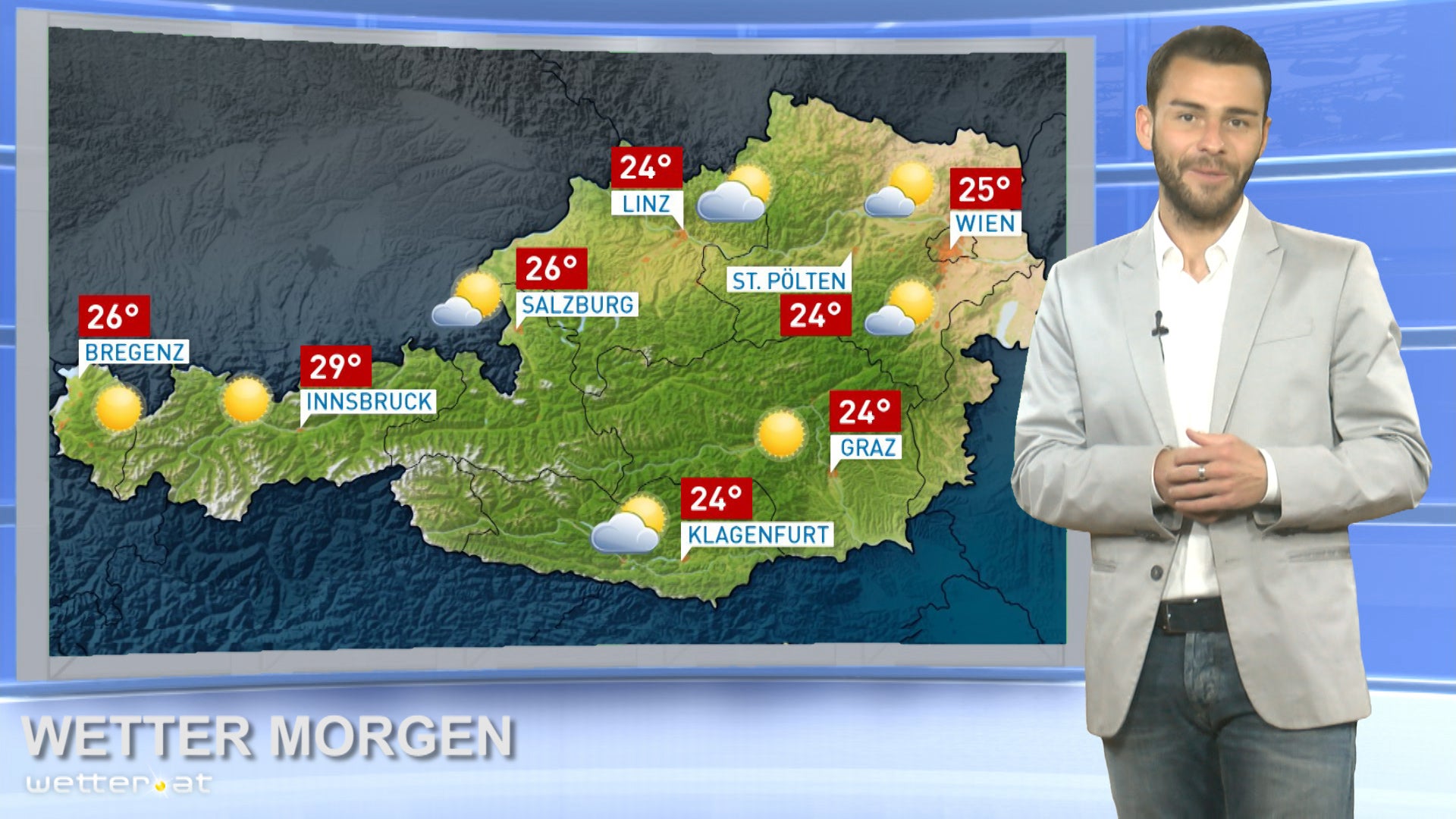 oe24.at oe24 Video WETTER WETTER Das Wetter morgen 06.06.14, 15:00 | Aktualisiert: 06.06.14, 16:51 Das Wetter morgen Fehler im Artikel gefunden? Jetzt melden.