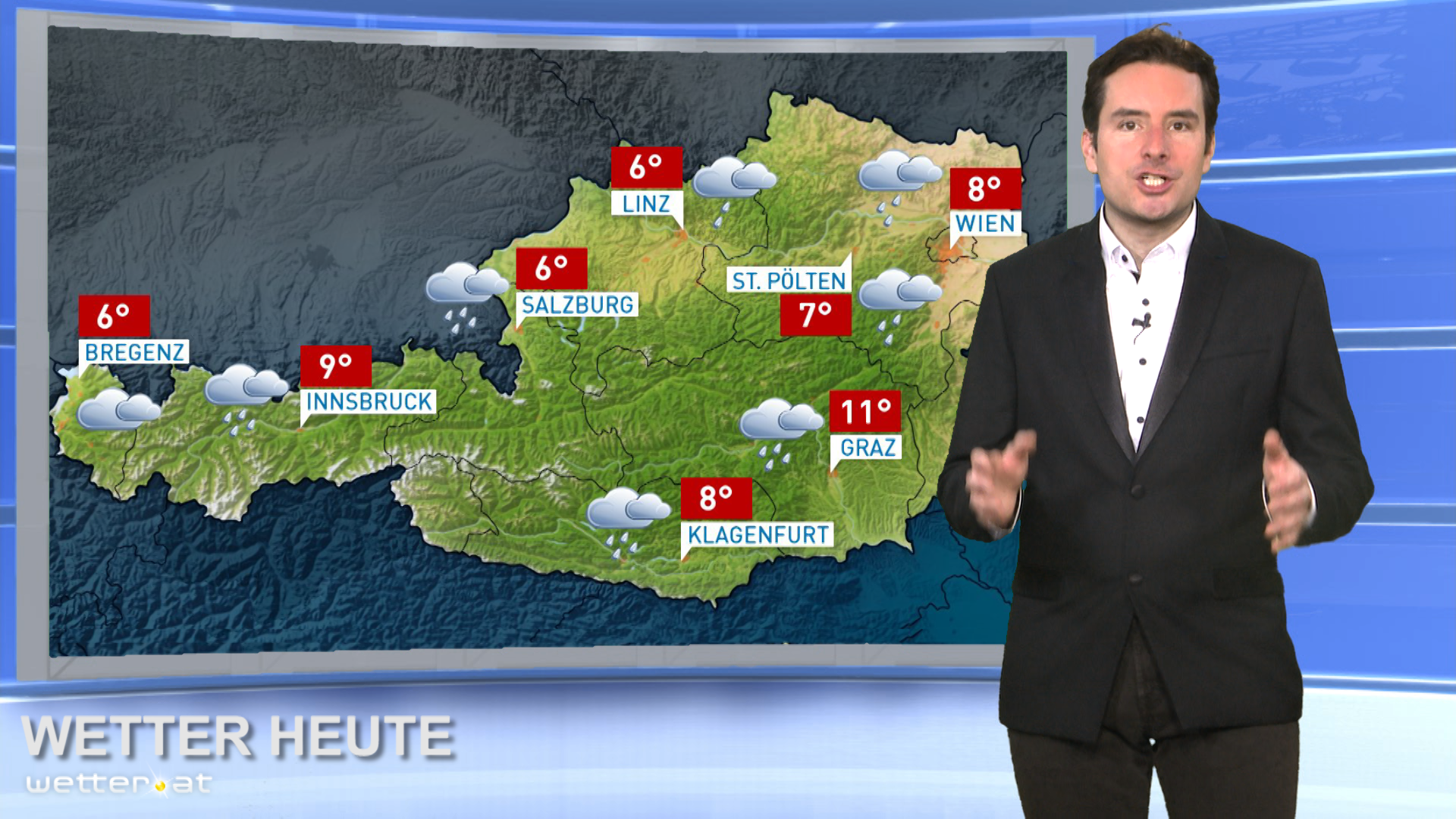Über Tal- und Beckenlagen der Osthälfte Österreichs halten sich zunächst einige Nebel- und Hochnebelfelder. Stellenweise bleibt es ganztägig trüb durch Hochnebel. Sonst wird es aber ein freundlicher, oft auch sonniger Tag. Hoch am Himmel ziehen einige harmlose Wolkenfelder vorüber. Gegen Abend verdichten sich die Wolken in mittleren Schichten vor allem über Vorarlberg und Tirol.