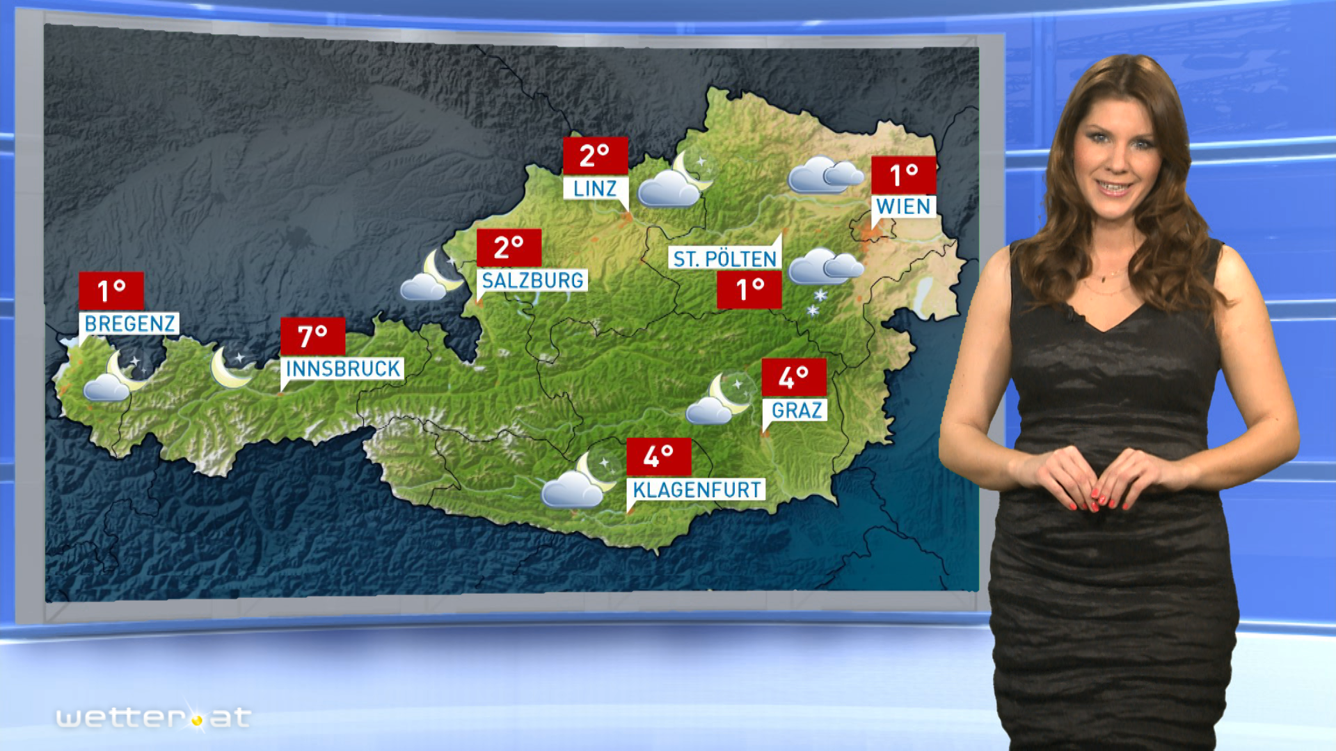 Vom Bodensee über Osttirol und Kärnten bis in den Süden der Steiermark verziehen sich Nebel und Restwolken meist rasch und es geht sonnig durch den Tag. Der Norden und Osten bekommen hingegen meist keine Sonne zu sehen. Hier kann es örtlich auch noch ein wenig schneien, unterhalb von etwa 300 bis 700m regnen.