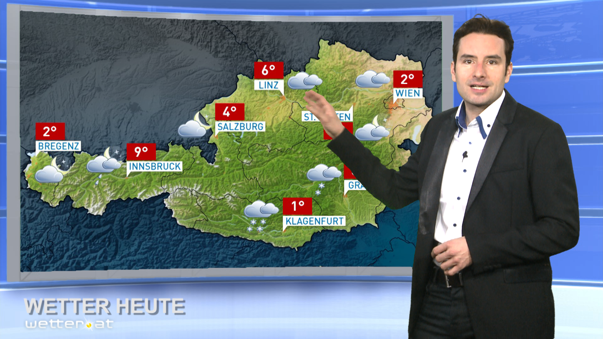 Im Süden schneit es in vielen Regionen den ganzen Tag über kräftig und ohne längere Unterbrechungen. Sehr große Mengen von nassem Neuschnee werden erneut in Osttirol und in Oberkärnten erwartet. In tiefen Lagen kann der Schneefall allmählich in Schneeregen oder teils gefrierenden Regen übergehen.