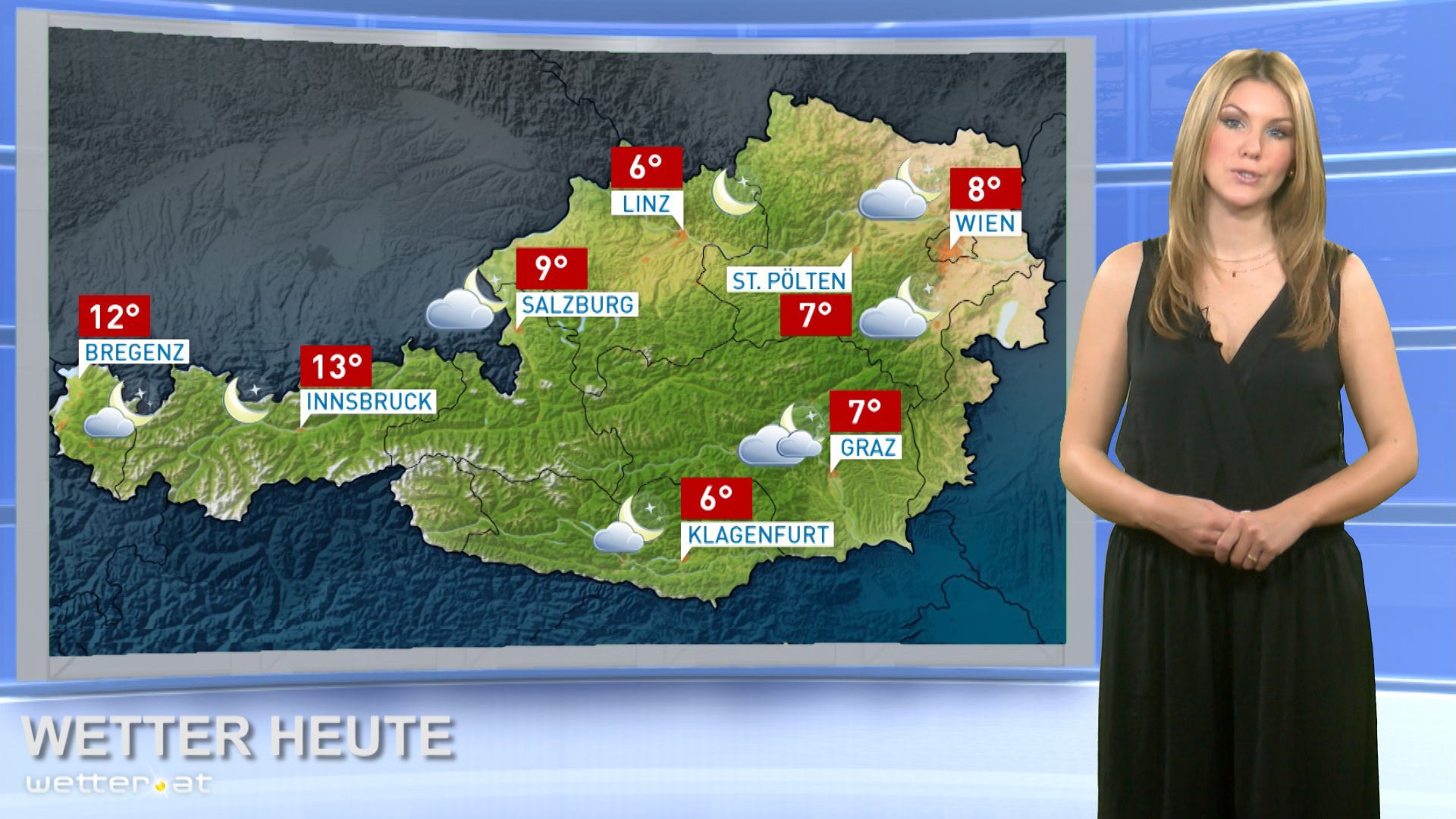 Recht sonnig verläuft der Tag im Süden, die lokalen Nebelfelder in den Becken lockern hier nach und nach auf. Alpennordseitig ist stärkere Schichtbewölkung vorhanden, besonders im Bergland kann es ein paar Regentropfen geben. Die Schneefallgrenze liegt dabei zwischen 1400 und 2000m.