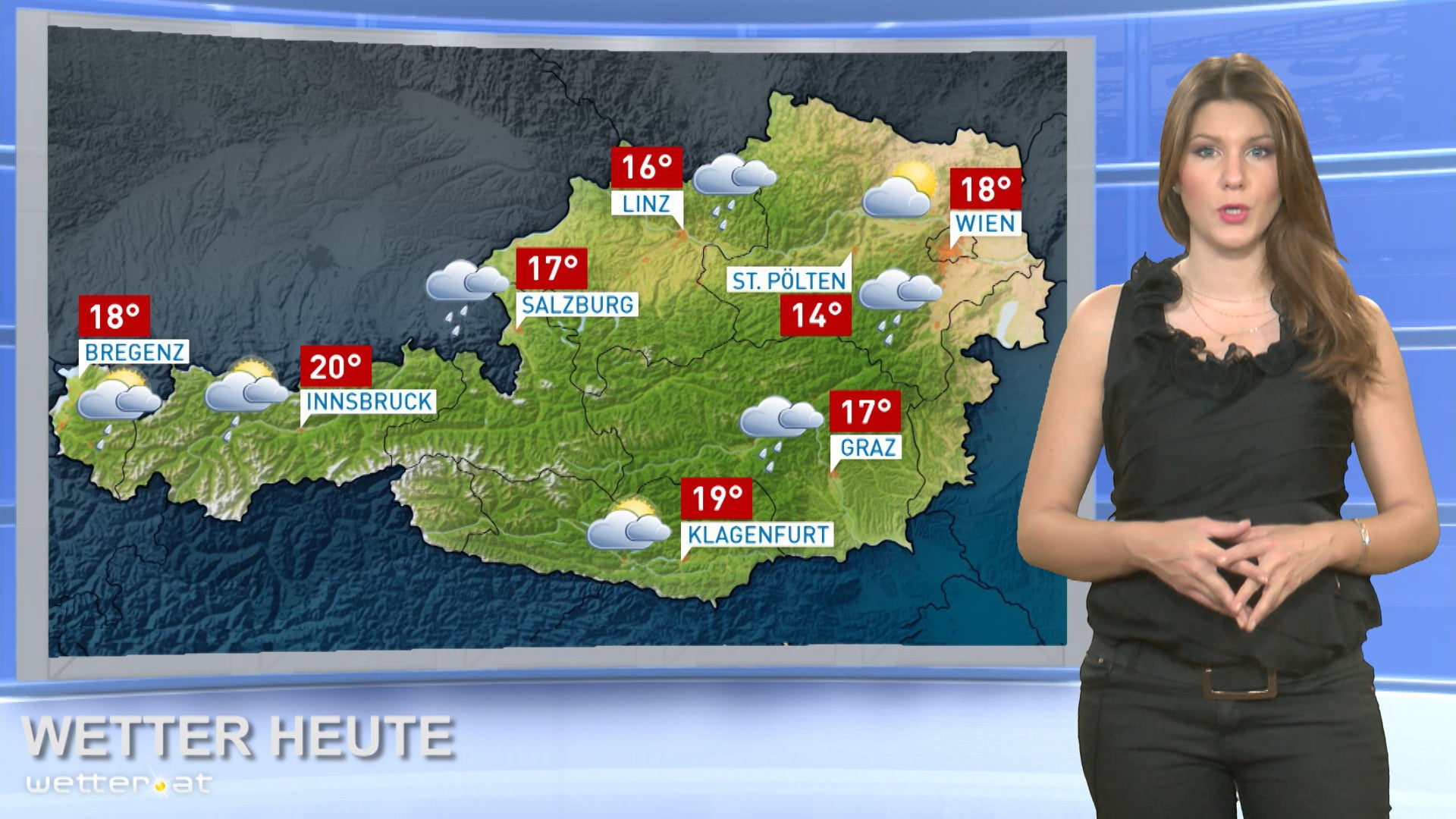 Der Tag startet meist mit vielen dichten Wolken und Regen. Der Niederschlagsschwerpunkt liegt dabei entlang der Alpennordseite zwischen dem Salzkammergut und dem westlichen Niederösterreich. Hier regnet es zum Teil intensiv. Speziell über dem östlichen Flachland gehen dabei in labiler Luft am Vormittag auch Gewitter nieder. Während sich nachmittags im Westen das Wetter langsam beruhigt und die Chancen auf Sonnenschein steigen, bleibt es weiter im Osten trüb und nass.