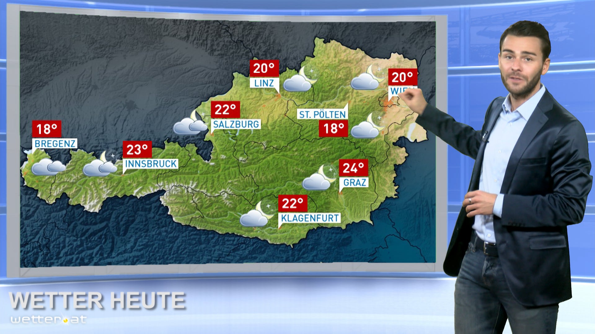 Im Westen nimmt die Bewölkung zu, in Vorarlberg sind am Nachmittag erste Regenschauer dabei. Sonst liegen besonders über den Niederungen und im Waldviertel wieder verbreitet Nebel und Hochnebel, der sich oft zäh teils bis in den Nachmittag hält. Stellenweise kann er sogar beständig sein. Sonst scheint aber außerhalb des Nebels oder nach Nebelauflösung oft die Sonne.
