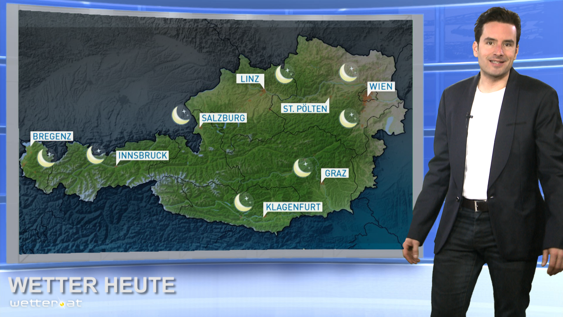 Über dem ganzen Land zeigt sich strahlend blauer, wolkenloser Himmel. Es weht schwacher, im Donautal gelegentlich auch mäßiger Wind, meist aus Ost bis Südost.