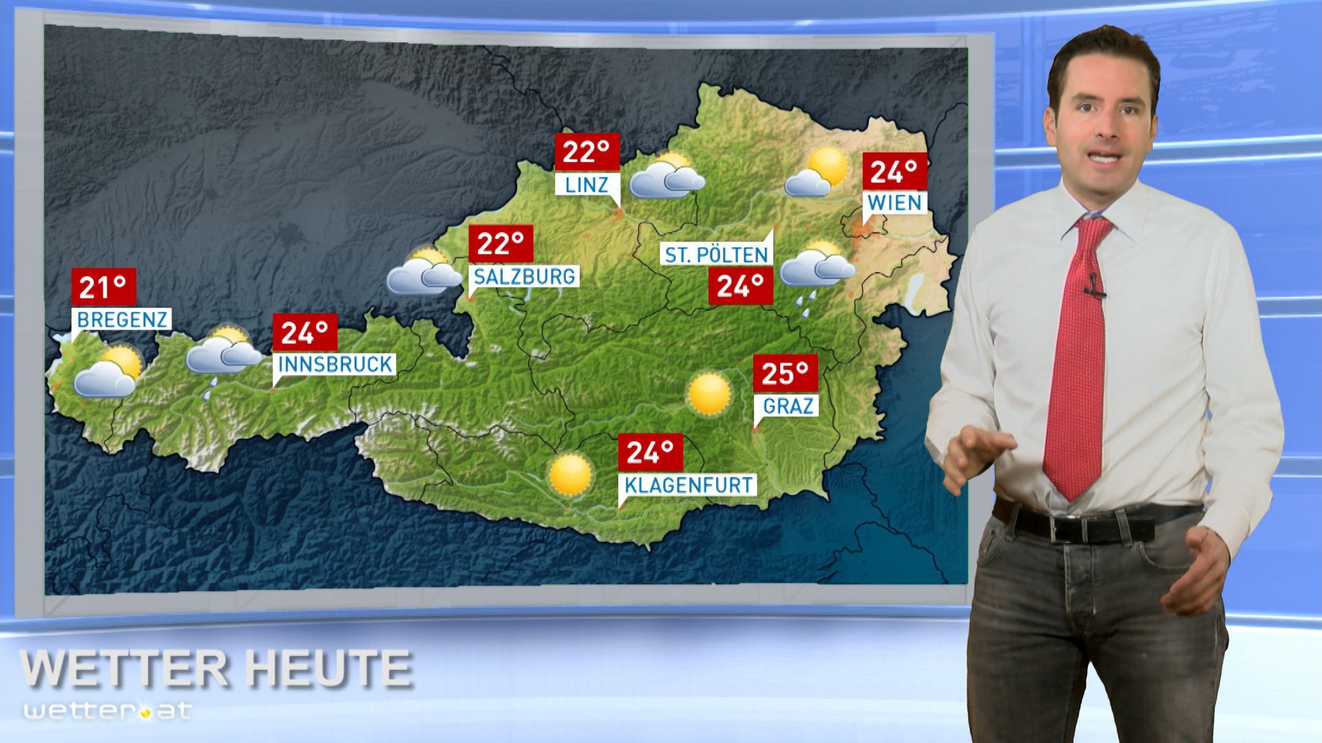 Sonnenschein und meist nur dünne hohe Wolkenschlieren prägen das Wetter zum Wochenbeginn. Am Montagnachmittag entwickeln sich inneralpin und im Norden zwar Quellwolken, sie bringen aber selbst im Bergland höchstens isolierte kurze Schauer mit sich.