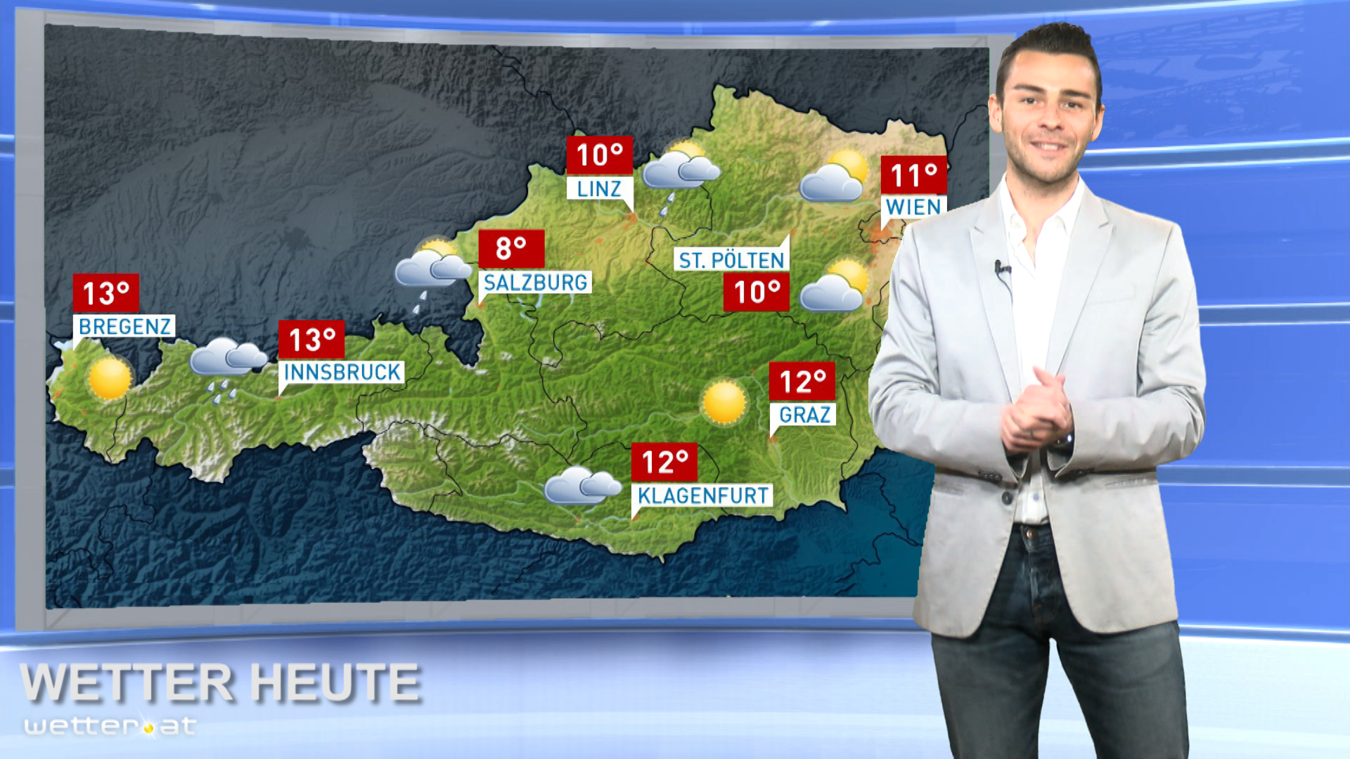 Zunächst ist es noch überwiegend freundlich und auch öfter sonnig, vor allem an der Alpensüdseite sowie in Vorarlberg und im Tiroler Oberland. Von Norden her treffen jedoch allmählich dichte Wolken ein und die Schauertätigkeit lebt auf. Spätestens am Nachmittag ist verbreitet mit Regenschauern, Graupelschauern und sogar mit einzelnen Gewittern zu rechnen.