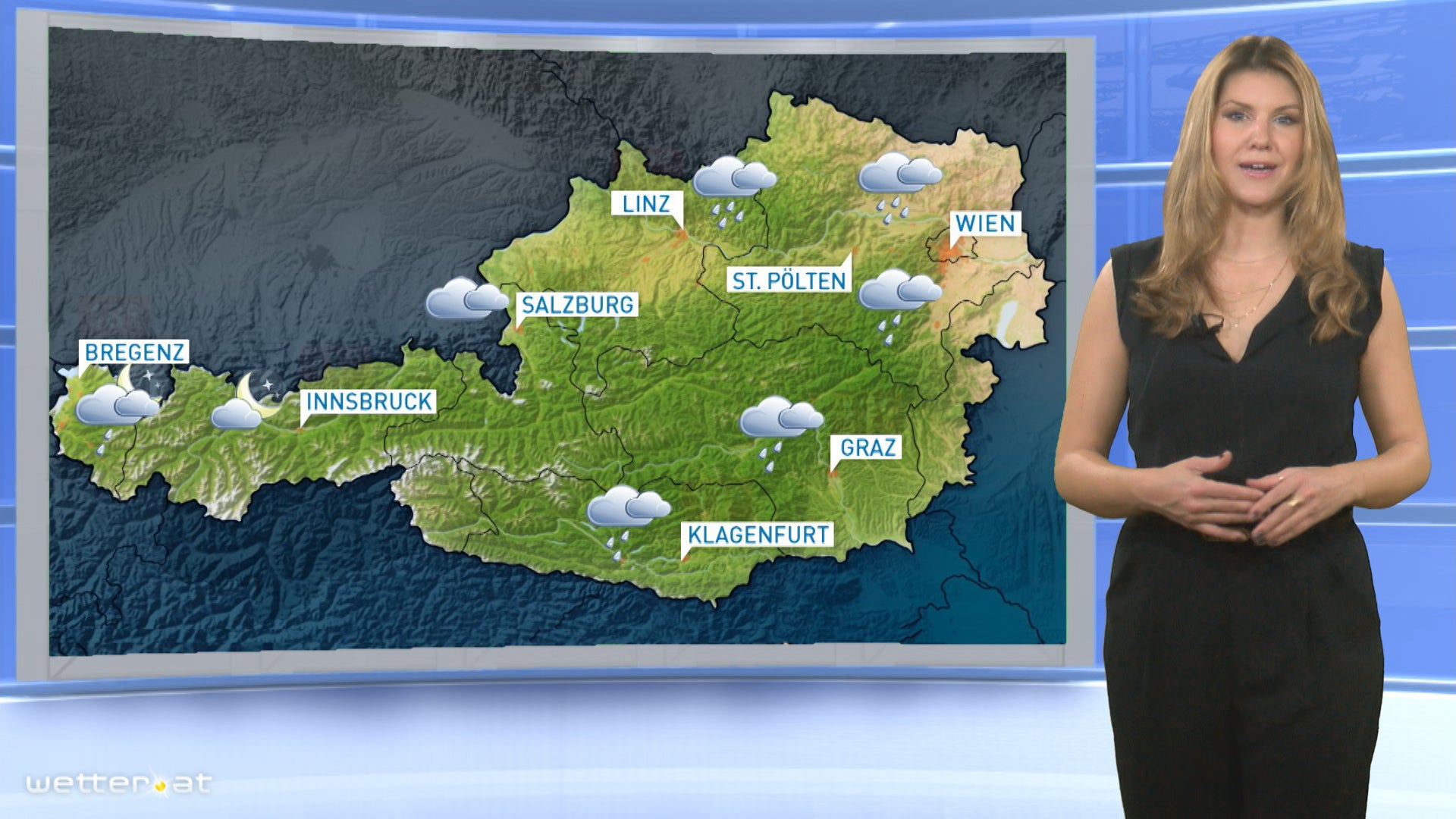 Von Vorarlberg entlang der Alpennordseite über Salzburg und Oberösterreich bis ins Weinviertel startet der Tag bereits dicht bewölkt und es regnet häufig. Weiter im Süden ist es zunächst noch teils sonnig, teils gibt es über den Niederungen sowie in Beckenlagen Nebel und Hochnebel. Im Tagesverlauf breiten sich die Wolkenfelder weiter aus und auch im Süden steigt die Regenwahrscheinlichkeit am Nachmittag.