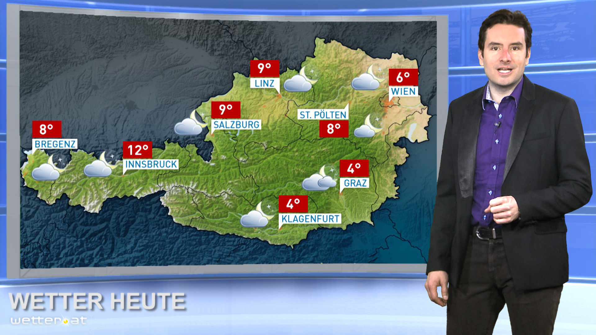 Über Tal- und Beckenlagen der Osthälfte Österreichs halten sich zunächst einige Nebel- und Hochnebelfelder. Stellenweise bleibt es ganztägig trüb durch Hochnebel. Sonst wird es aber ein freundlicher, oft auch sonniger Tag. Hoch am Himmel ziehen einige harmlose Wolkenfelder vorüber. Gegen Abend verdichten sich die Wolken in mittleren Schichten vor allem über Vorarlberg und Tirol.