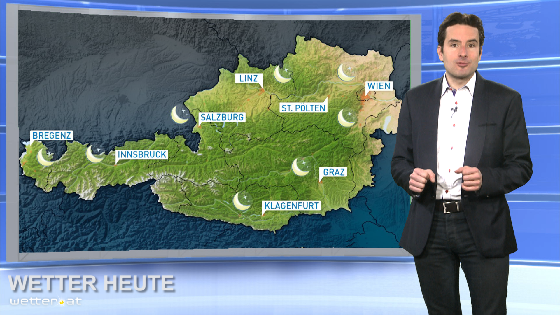 Trockene Luft bestimmt weiter das Wetter im Ostalpenraum. Nur stellenweise sind flache Morgennebel anzutreffen. Meist scheint von der Früh an verbreitet die Sonne von einem weitgehend wolkenlosen Himmel. Der Wind weht schwach bis mäßig aus Nordwest bis Ost.