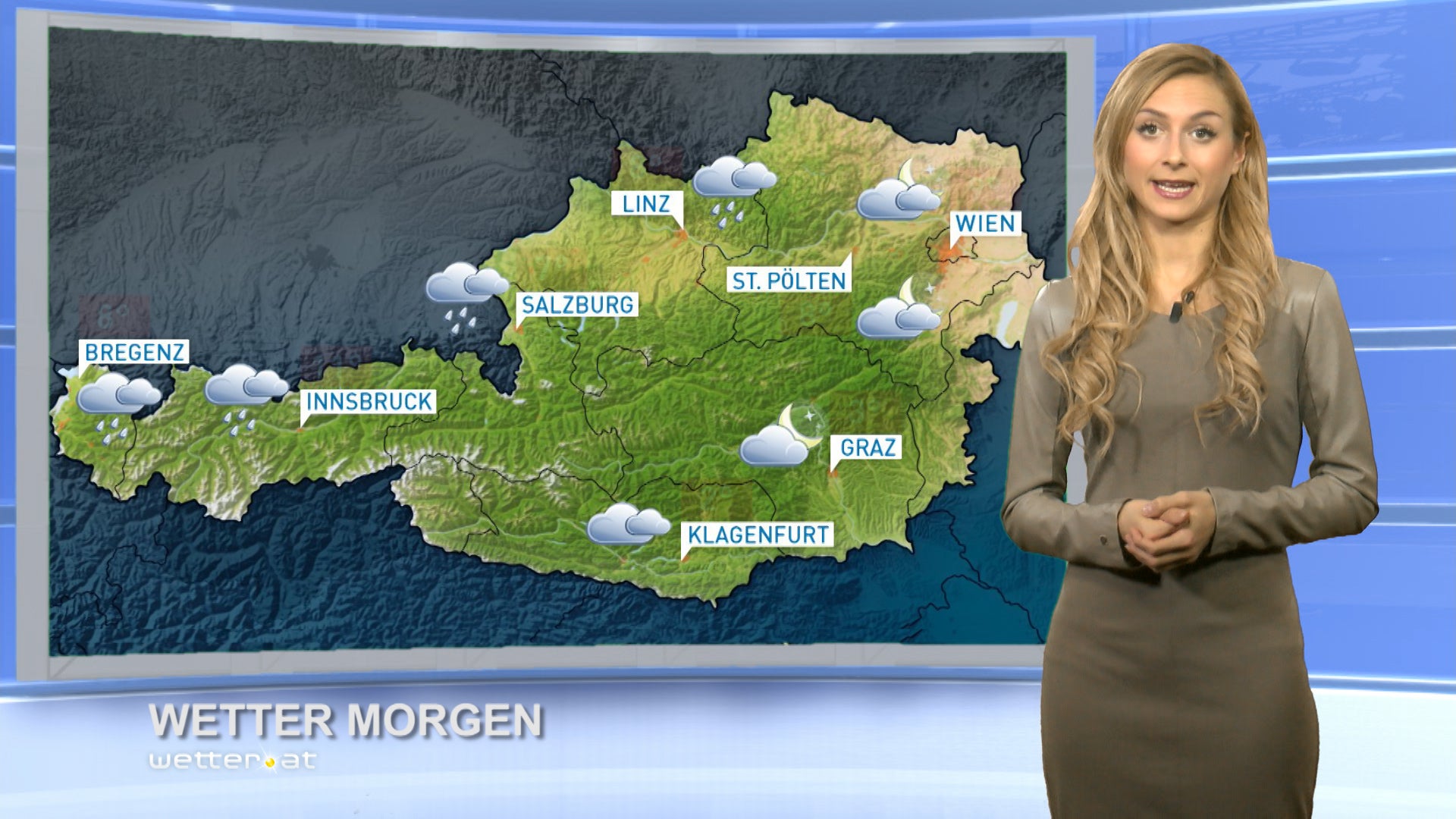 Entlang der Alpennordseite zwischen Vorarlberg und dem westlichen Niederösterreich sowie im Norden dominieren ganztägig dichte Wolken und es regnet verbreitet. Die Schneefallgrenze steigt im Tagesverlauf auf Lagen zwischen 1600 und 2000m Seehöhe an. Über dem östlichen Flachland sowie am Alpenostrand legt der Niederschlag hingegen nach Regen in der Früh und Regen am Abend zwischenzeitlich eine Pause ein und die Sonne zeigt sich. Den meisten Sonnenschein gibt es aber im Süden und Südosten.