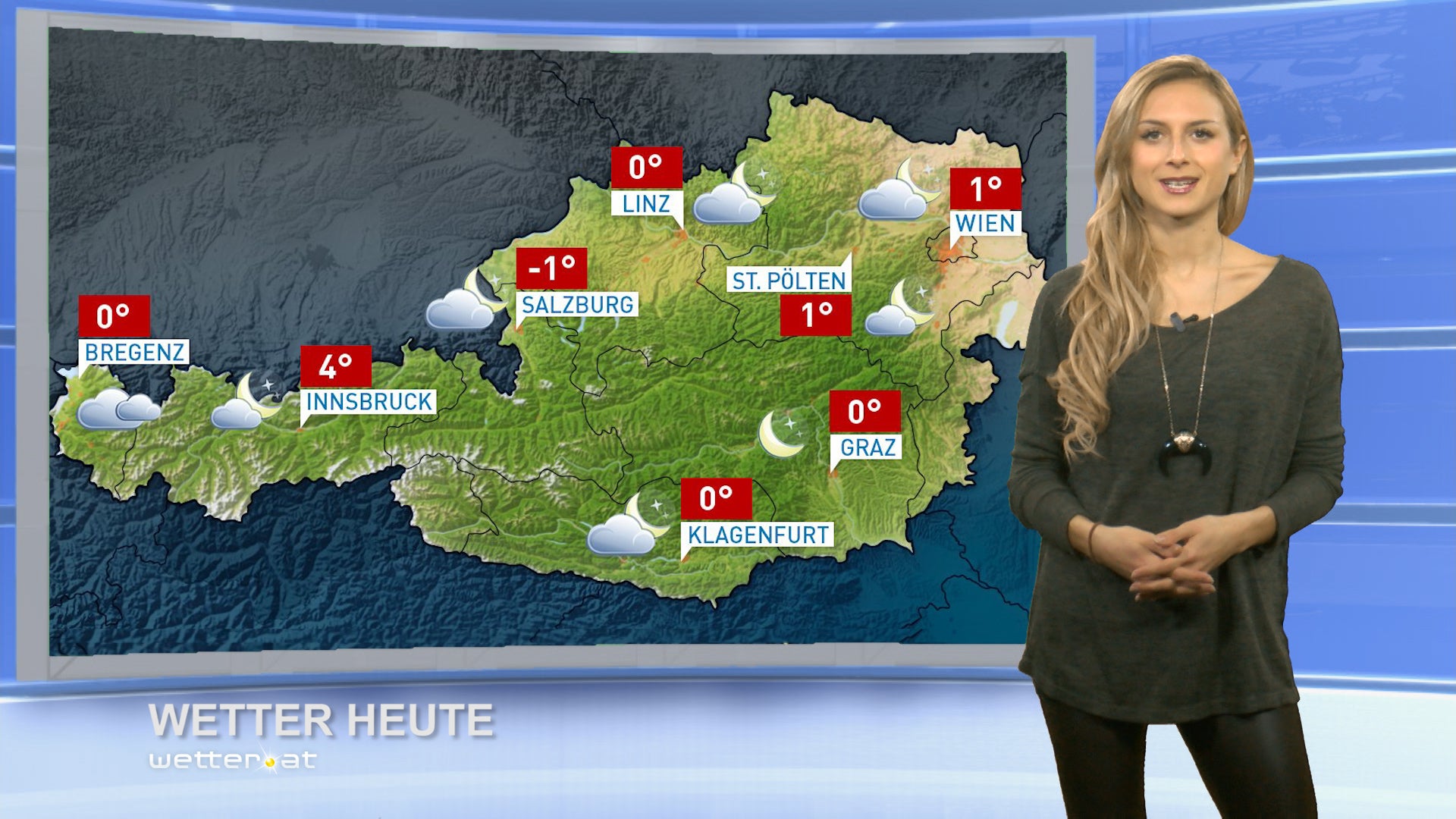 Östlich von Salzburg ziehen in der Früh und am Vormittag noch dichte Wolkenfelder und stellenweise unergiebige Schneeschauer durch. Trocken und nach der Auflösung von lokalen Nebel- oder Hochnebelfeldern recht sonnig ist es im Süden und Südosten. Am Nachmittag klingen letzte Schauer ab und die Sonne setzt sich fast im ganzen Land durch. Der Wind weht schwach bis mäßig, am Alpenostrand mitunter nochmals auffrischend aus Südwest bis Nordwest.