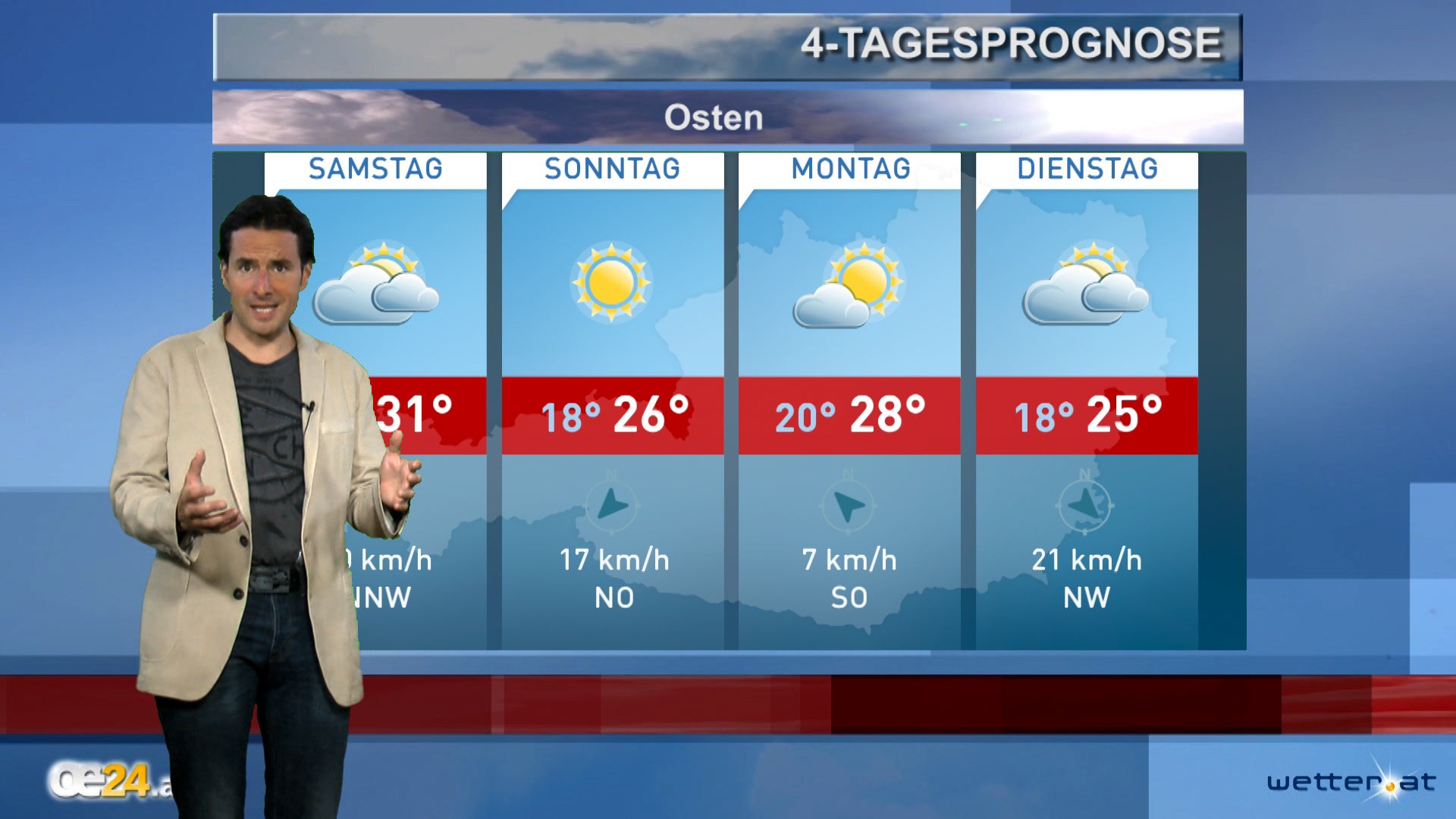 oe24.at oe24 Video WETTER WETTER Die 4-Tagesprognose 08.08.13, 14:04 | Aktualisiert: 08.08.13, 15:41 Die 4-Tagesprognose Fehler im Artikel gefunden? Jetzt melden.