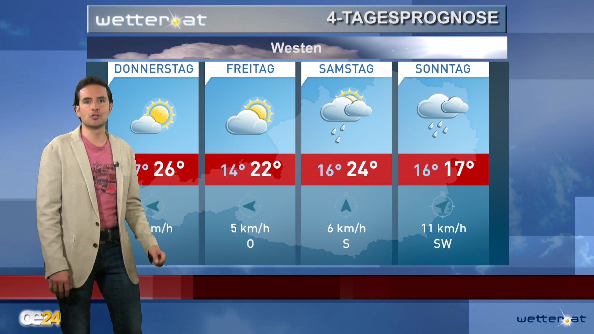 oe24.at oe24 Video WETTER WETTER Die 4-Tagesprognose 20.08.13, 00:04 | Aktualisiert: 20.08.13, 15:06 Die 4-Tagesprognose Fehler im Artikel gefunden? Jetzt melden.