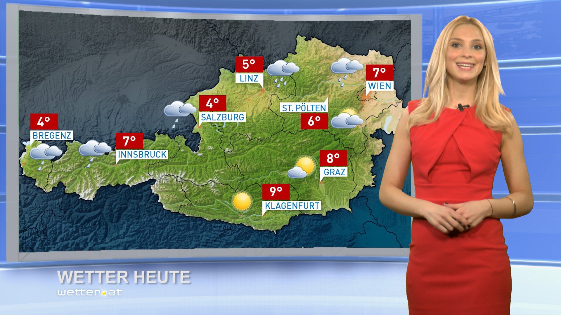 In den Nordstaulagen überwiegen die Wolken und immer wieder regnet oder schneit es. Die Schneefallgrenze liegt zwischen tiefen Lagen und 1000m Seehöhe. Sonst ziehen alpennordseitig in rascher Folge Wolken durch, dabei kann es kurzeitig auch bis auf 400m herunter Schnee- oder Graupelschauer geben, sogar Blitz und Donner sind möglich.