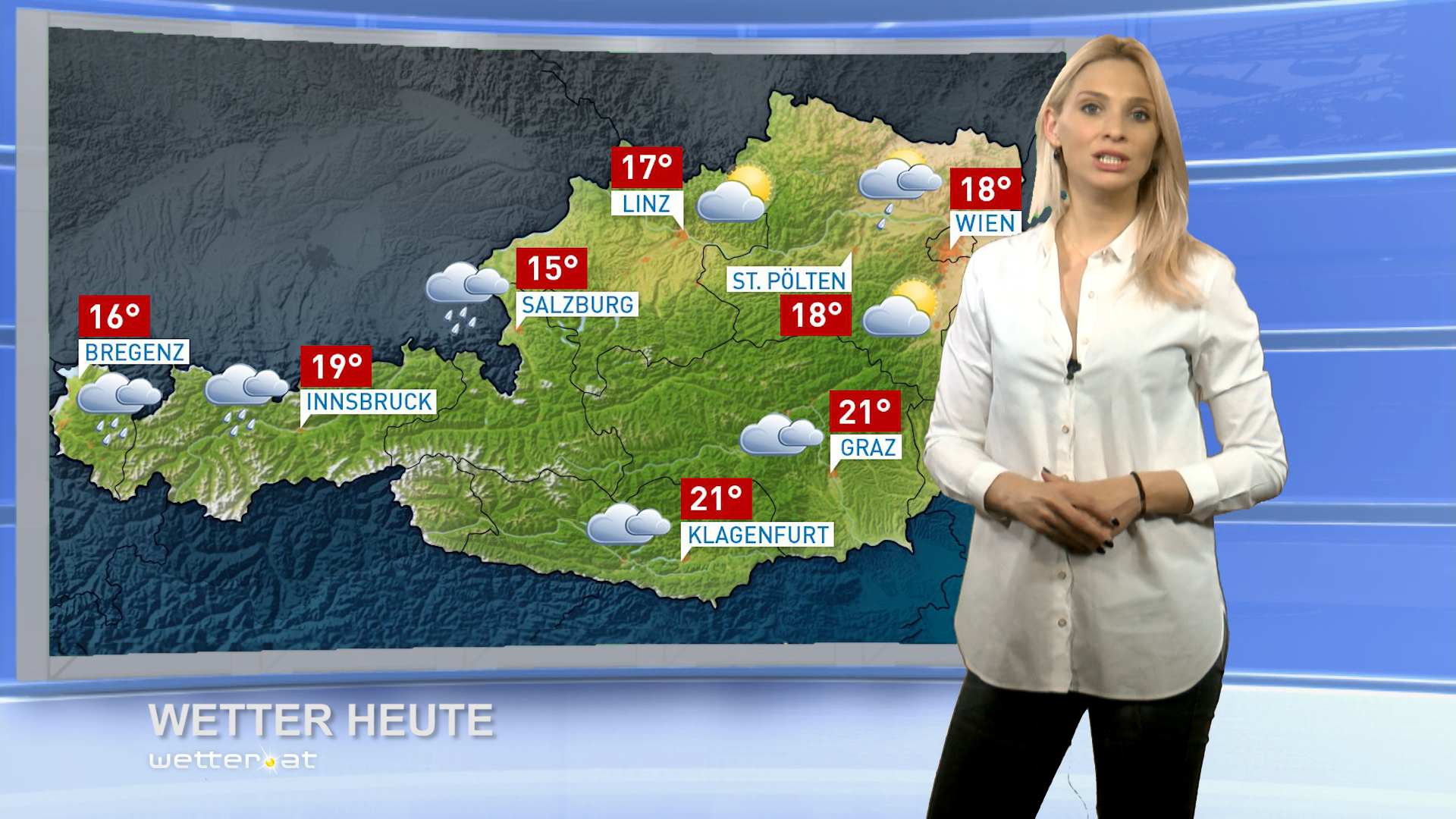 Mit Störungsaufzug verdichten sich die Wolken im Tagesverlauf von Nordwesten her. Besonders alpennordseitig und im Bergland gehen ab Mittag dabei teils intensive Regenschauer nieder, im Nordstau regnet es auch länger anhaltend. Östlich des Waldviertels sowie im Süden bleibt es zumeist niederschlagsfrei, mitunter auch teils sonnig. Schwacher bis mäßiger Wind aus West bis Nord. Frühtemperaturen 7 bis 14 Grad, Tageshöchsttemperaturen 19 bis 25 Grad.