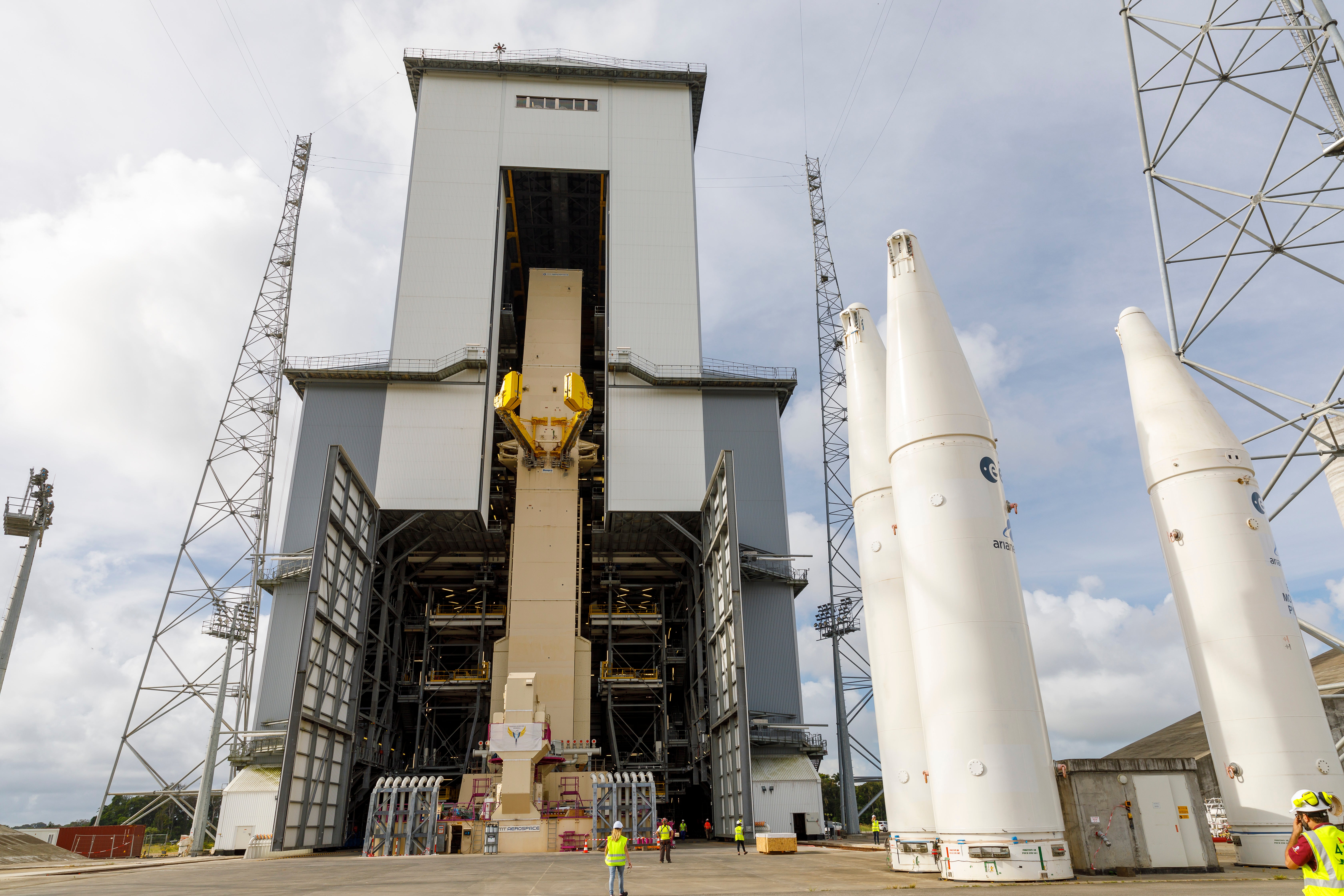Die Haupt- und Oberstufe für den kommenden Flug würden zurzeit in den Werken der ArianeGroup in Les Mureaux in Frankreich und in Bremen montiert. Sie würden demnächst an Bord der Canopée, eines neuartigen Frachtschiffs mit niedrigen Emissionen, nach Französisch-Guayana transportiert.