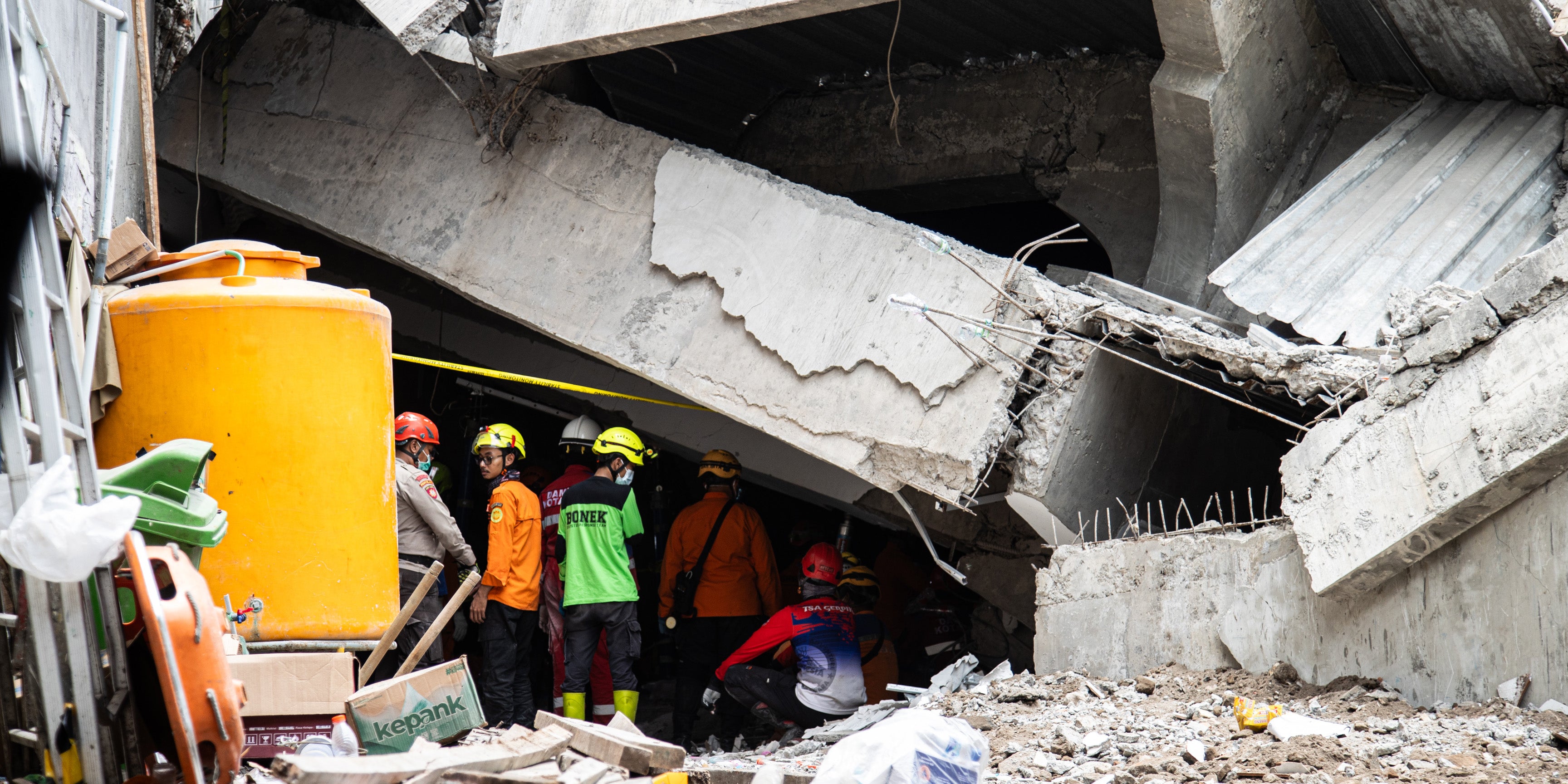 Massive Betonträger hätten die Bergung jedoch erschwert, da diese ohne schweres Gerät nicht entfernt werden könnten, sagte Suharyanto. Man habe den Einsatz von Baggern und Kränen bisher eingeschränkt, um die unter den Trümmern eingeschlossenen Leichen nicht zu verletzen.